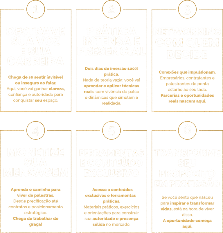 Agora, ele abre as portas do seu conhecimento em mais uma edição de uma imersão presencial única, desenhada para quem não quer mais adiar seus sonhos e está pronto para subir no palco com confiança e propósito.